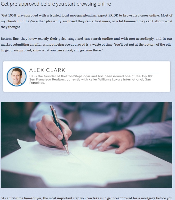 Bottom line, they know exactly their price range and can search (online and with me) accordingly, and in our market submitting an offer without being pre-approved is a waste of time. You’ll get put at the bottom of the pile. So get pre-approved, know what you can afford, and go from there.”