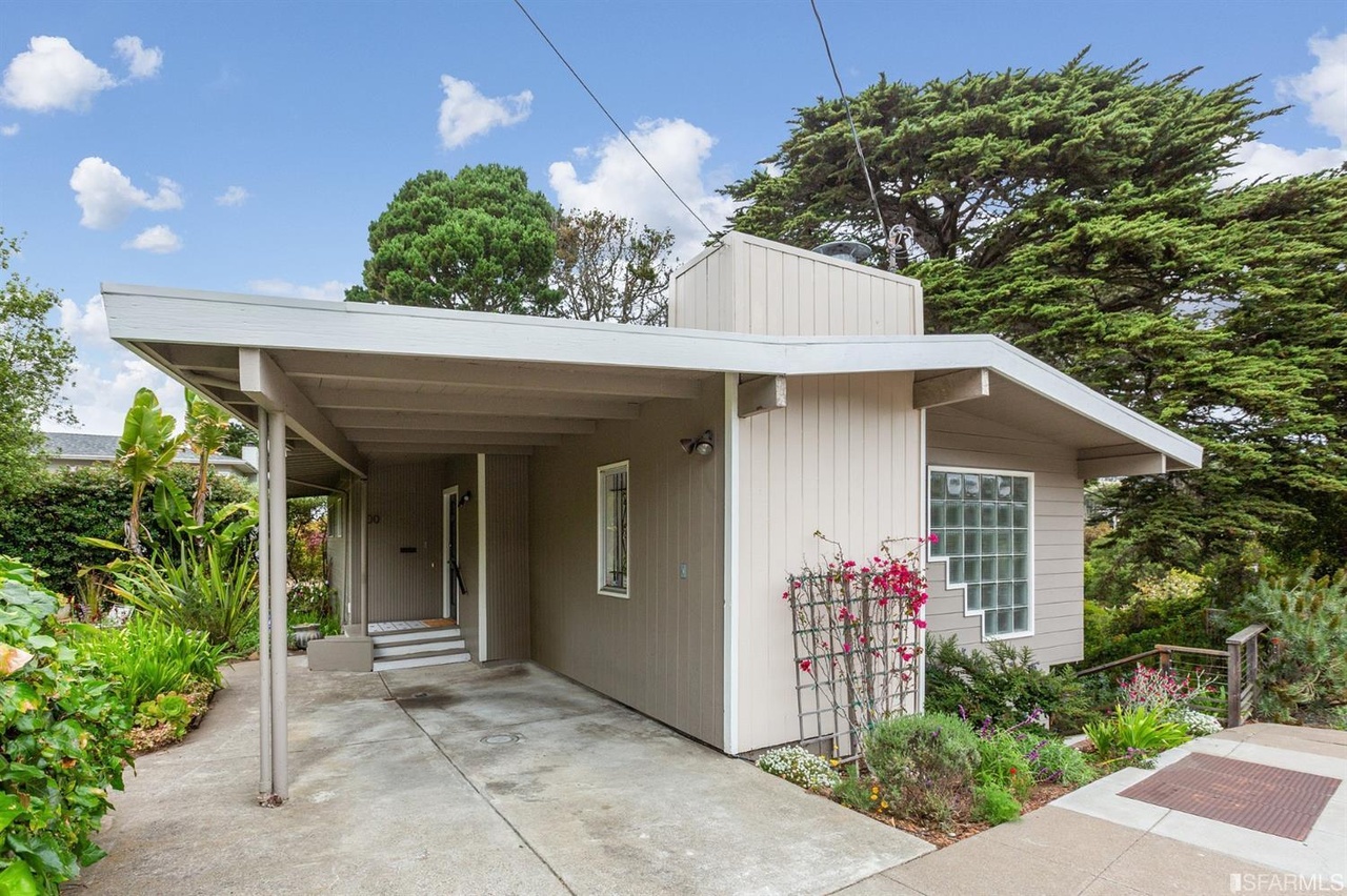 And it still works: Take the case of the recently listed 100 El Camino Del Mar, a circa 1958 house right on the edge of the Presidio and looking toward Lobos Creek from the rear, “a large, quiet lot surrounded by lush, private gardens and mature trees and plants,” realtor Robert Vernon writes.