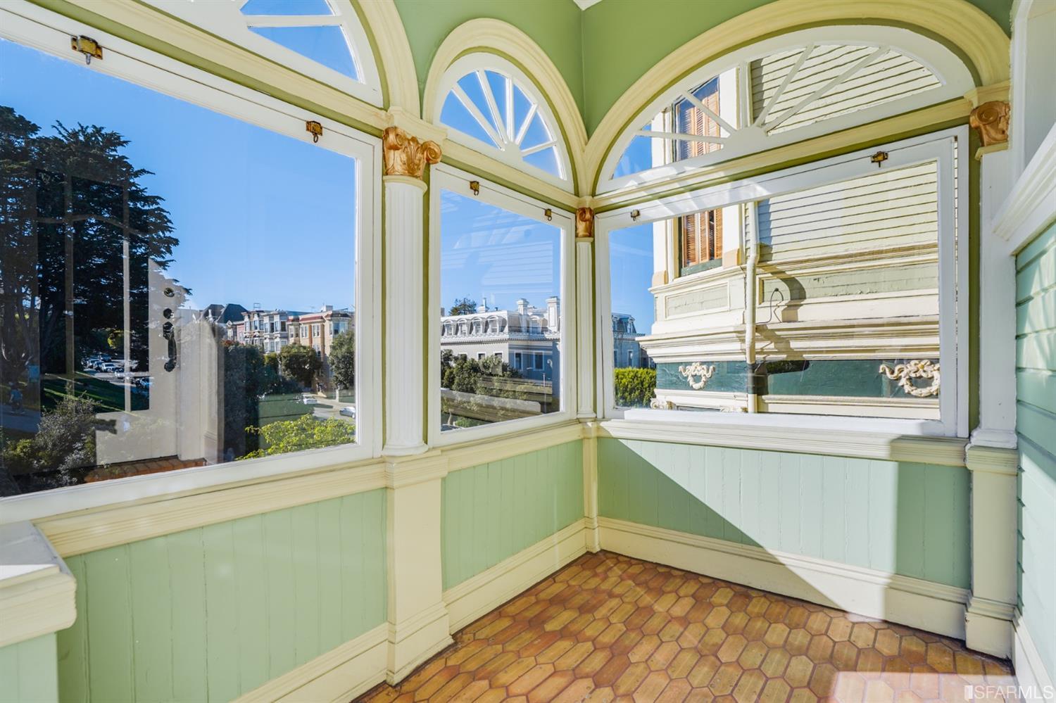 While the new listing calls this 1899 home a “centerpiece” of the row, really it’s on the edge. Admittedly, this is a bit of an arbitrary distinction, as many homes on these same blocks are just as historic, picturesque, and, in this day and age, incredibly pricy as the Painted Ladies–but you still won’t see 850 Steiner in many postcards.
