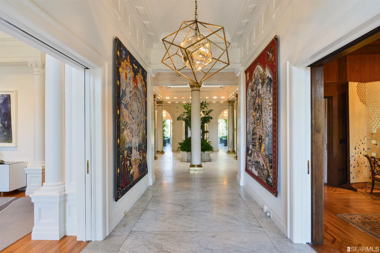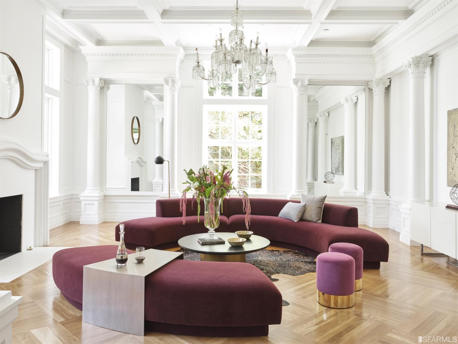 The royal pedigree is true, and nearly 40 years ago it landed this blue-blooded Presidio Heights mansion on the National Register of Historic Places–there it’s called the Koshland House, and the register describes the facade as “an academic replica of Le Petit Trianon at Versailles” praising “the quality of its interior detailing” and adding “its period and type define the end of an era in San Francisco.”