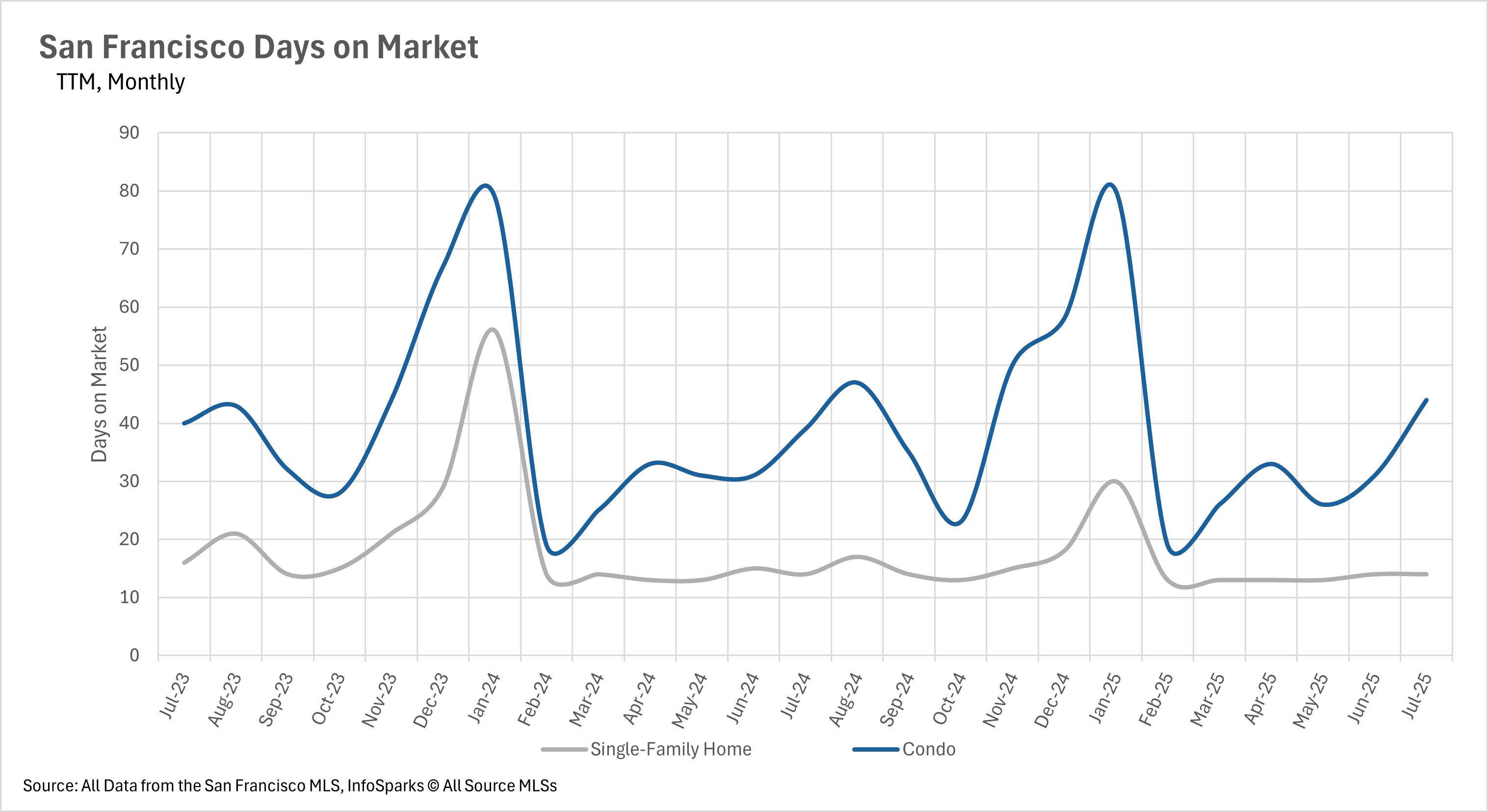 - Homes in the San Francisco area continue to sell within their historical average range.